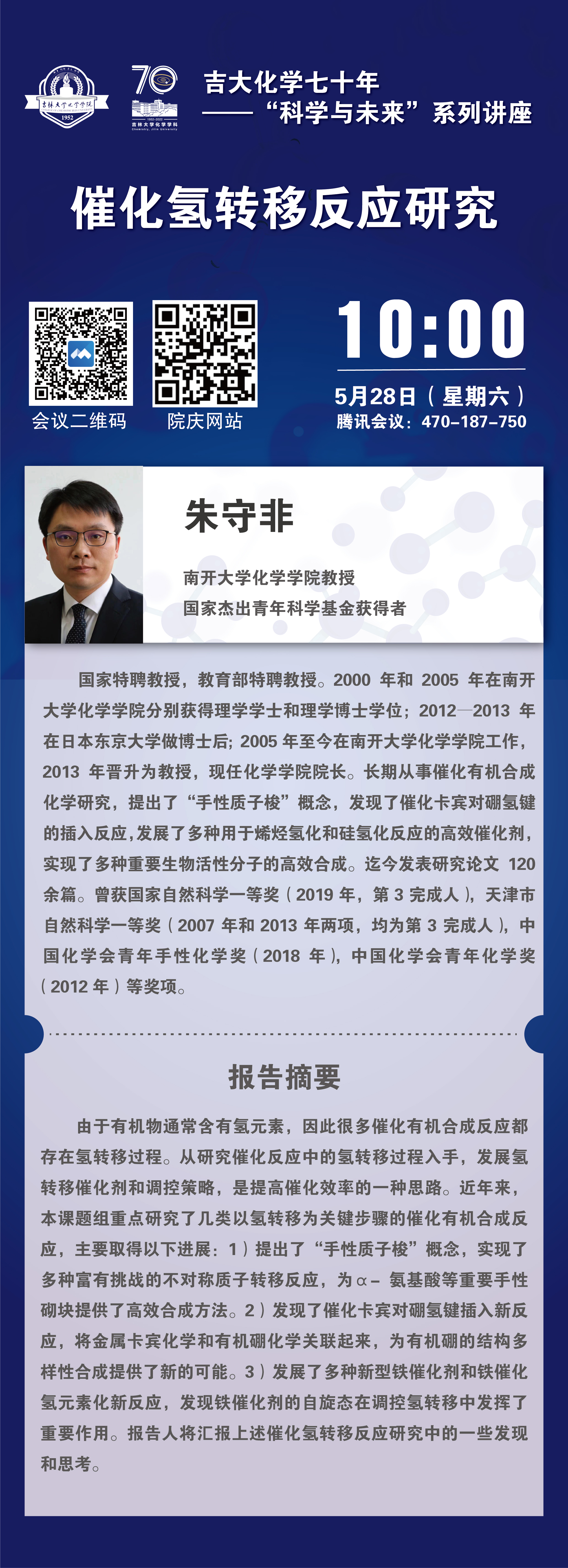黑料正能量 化学70年院庆系列活动——科学与未来系列讲座:催化氢转移反应研究