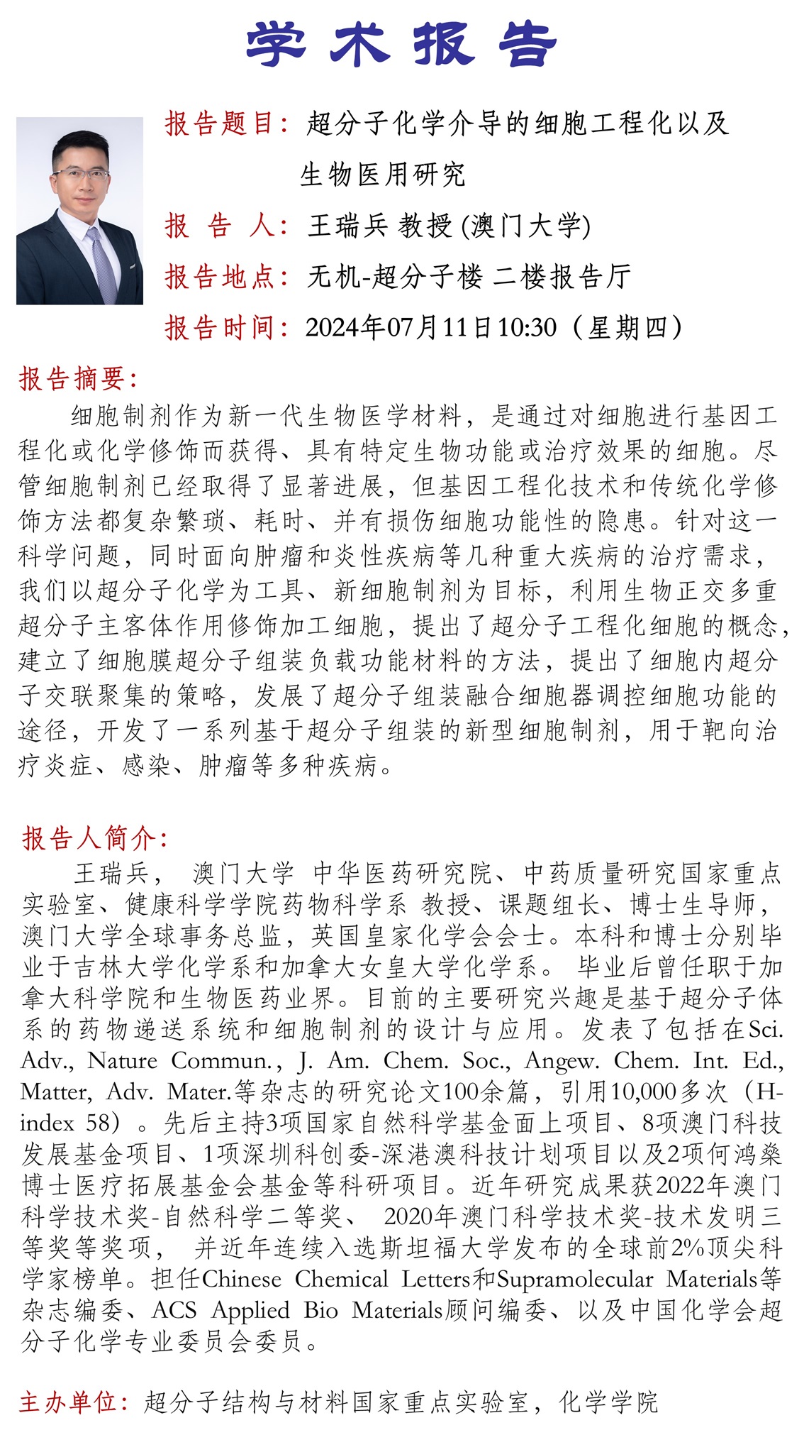 中心校区 无机-超分子楼 二楼报告厅