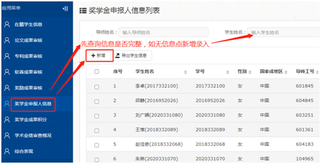 研究生师生信息综合库”(//one.heiliaobase.com/),在【奖学金成果积分】栏进行查询(见下图说明)。初评获奖候选人再次核实自己是否填报【奖学金申报人信息】,涉及发放奖学金银行卡信息等。