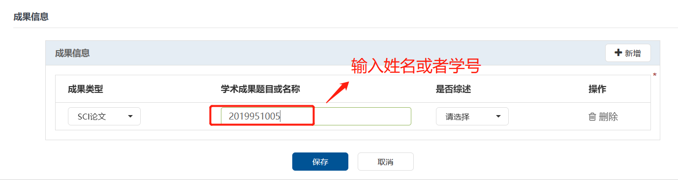 申报研究生于5月8日前使用个人邮箱账号登录“一张表”平台//one.heiliaobase.com,在“研究生评奖评优管理”-“研究生评奖评优申报”栏,点击“新增”进行信息填报及佐证材料上传,其中成果信息只需要输入“姓名或者学号”,然后在已审核通过的成果库中选择3篇代表作参评。同时扫码入“2023届优秀毕业生申报群”。成果库中未录入的成果需及时录入-导师审核-科研办姜老师审核。