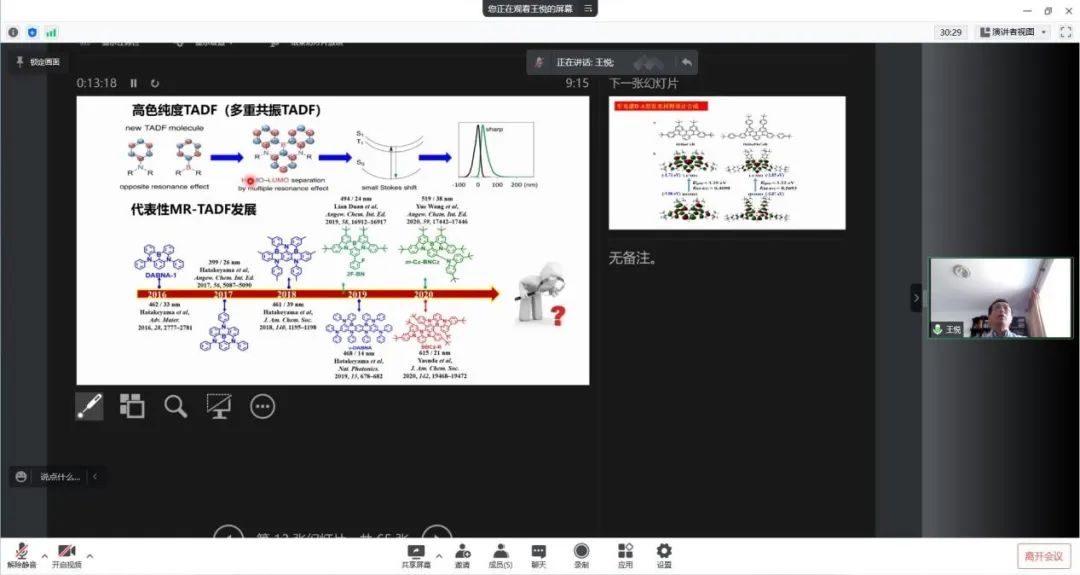 化学七十年——科学与未来系列讲座”,本期讲座邀请了王悦教授作主题为“有机分子的激发态与高性能电致发光材料”的线上学术报告。