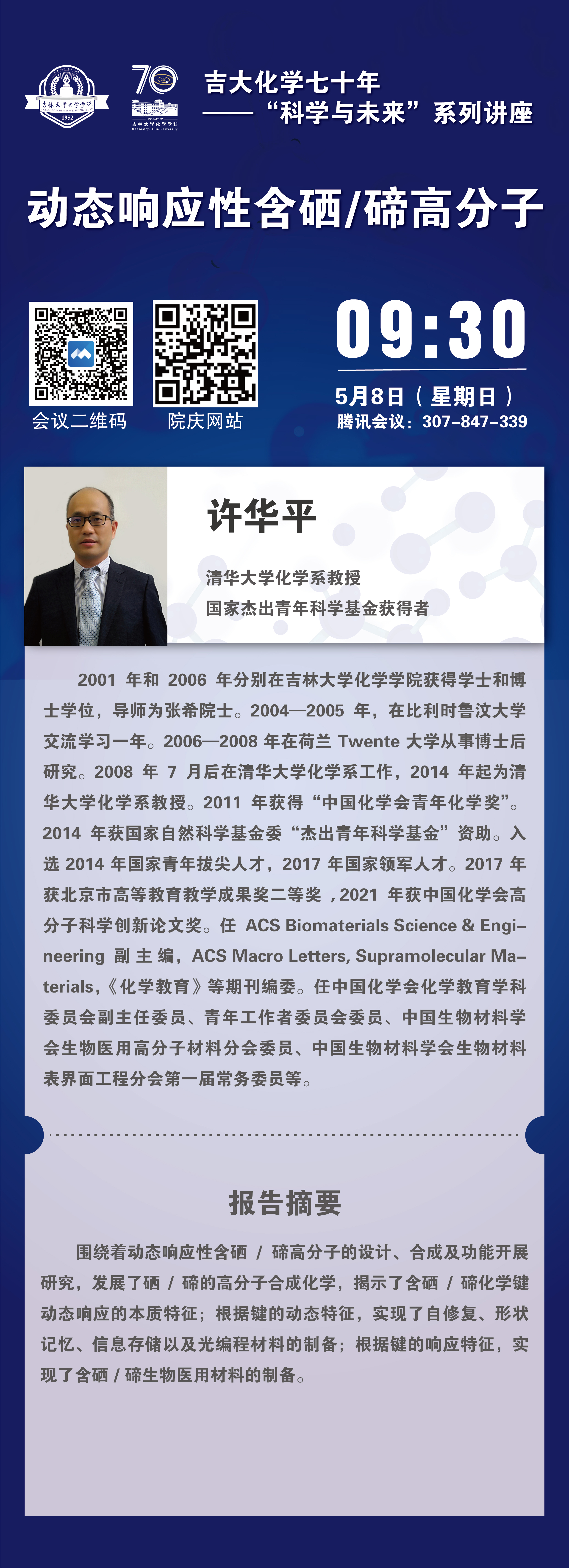 黑料正能量 化学70年院庆系列活动——科学与未来系列讲座:动态响应性含硒/碲高分子