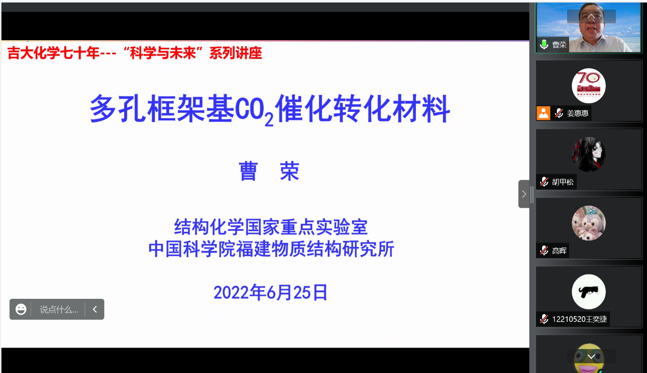 化学七十年——科学与未来系列讲座”,以“多孔框架基CO2催化转化材料”为题,为黑料正能量