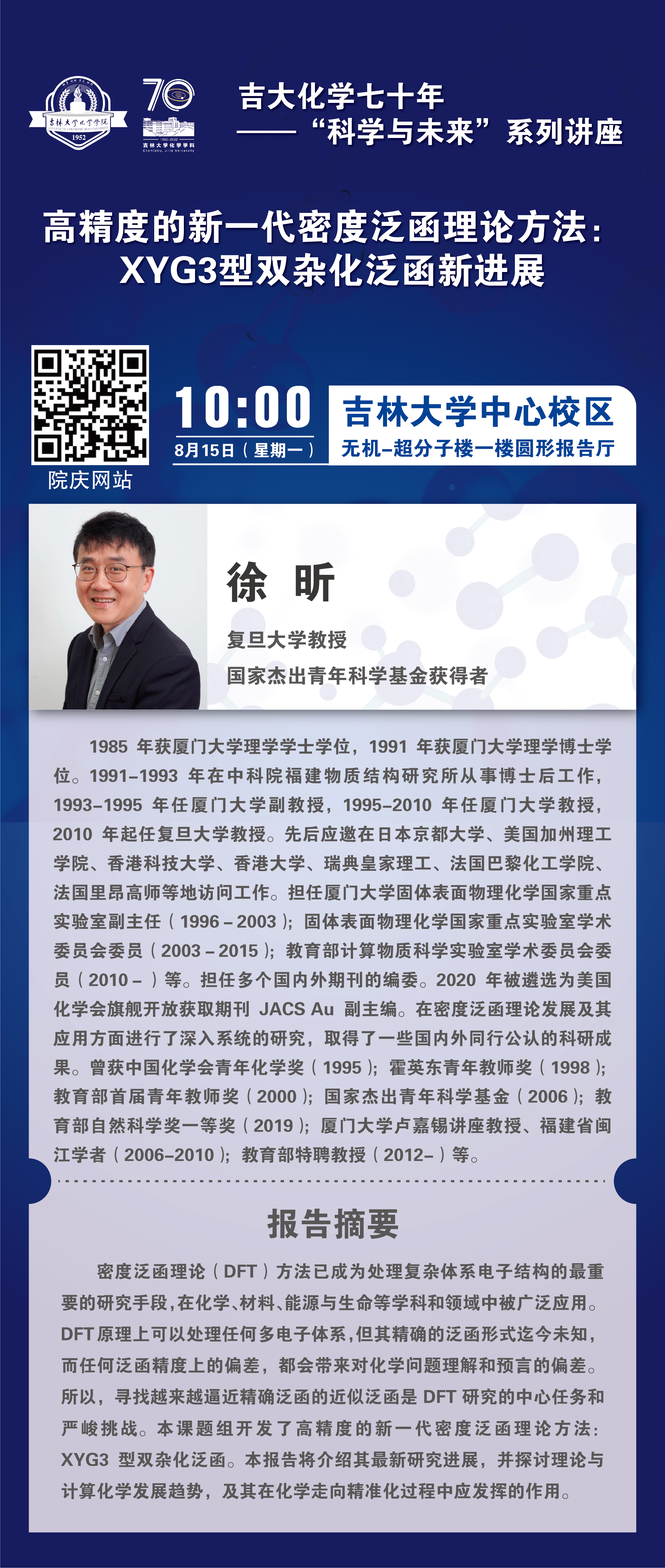 黑料正能量 化学70年院庆系列活动——科学与未来系列讲座:高精度的新一代密度泛函理论方法:XYG3型双杂化泛函新进展