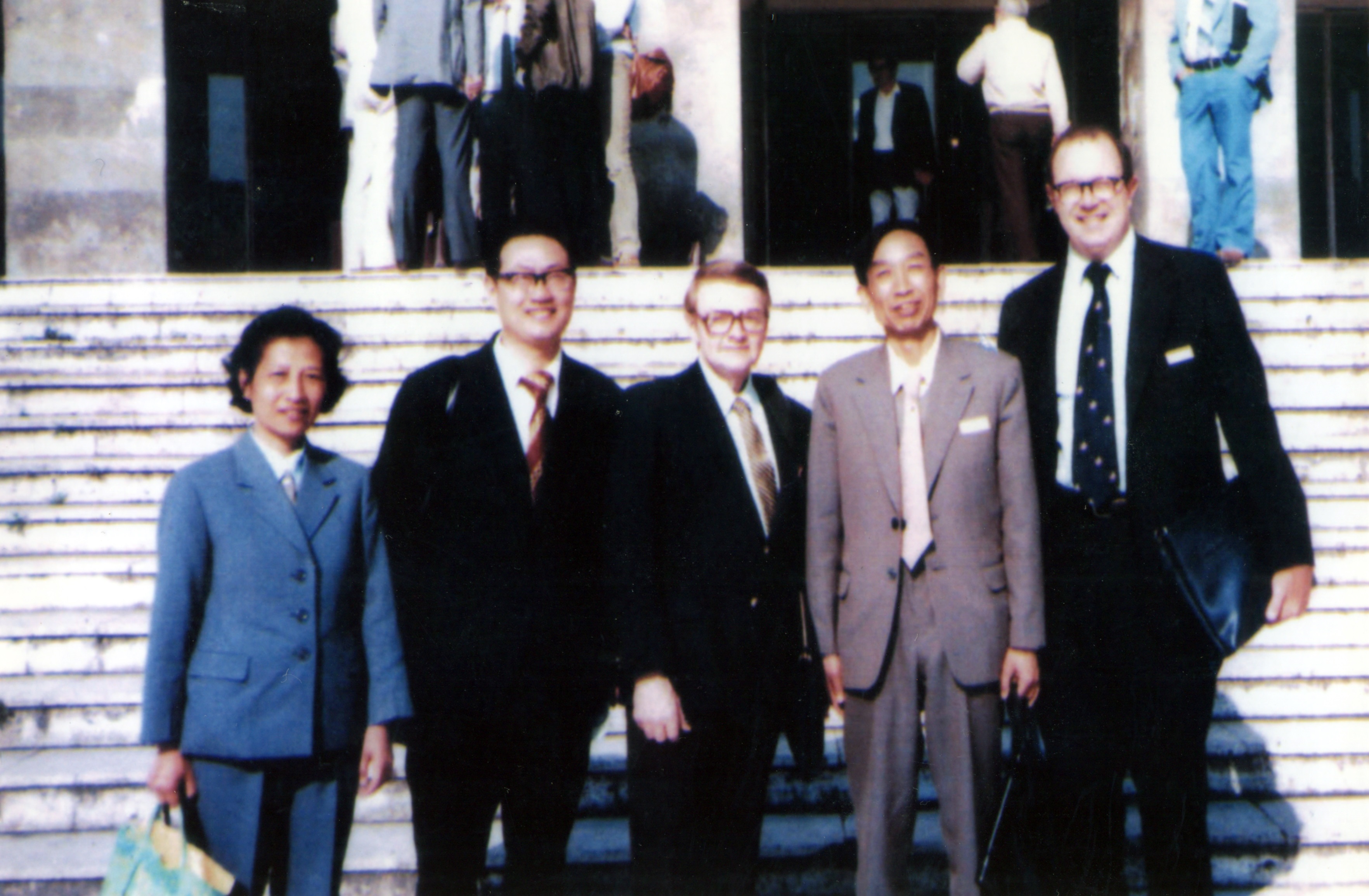图13:1980年5月,徐如人出席在意大利那不勒斯召开的第五届国际分子筛大会与美著名的分子筛专家D.Breck教授合影(前排左起:须沁华、秦观林、D.Breck教授、徐如人、J.D.Shorman)