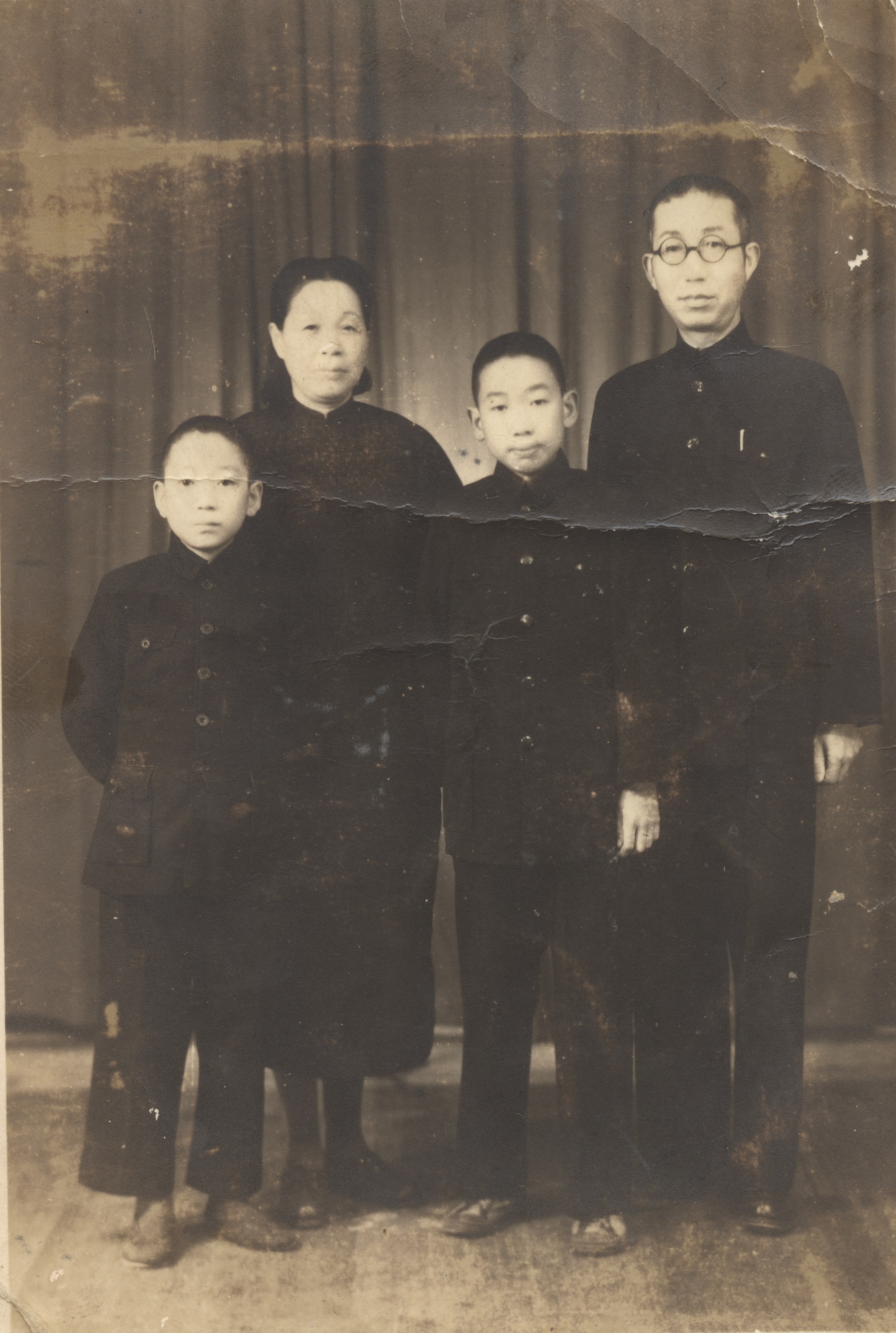 图2:1945年徐如人(前排右1)与父母和弟弟在杭州合影