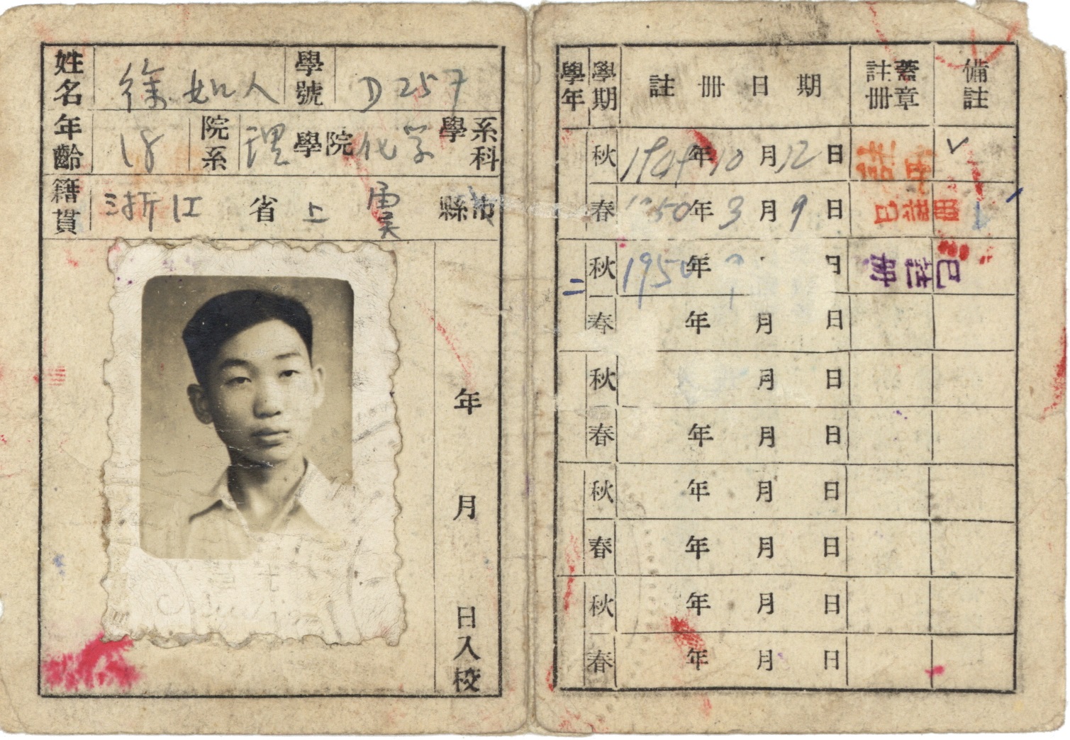 图5:徐如人复旦大学学生证