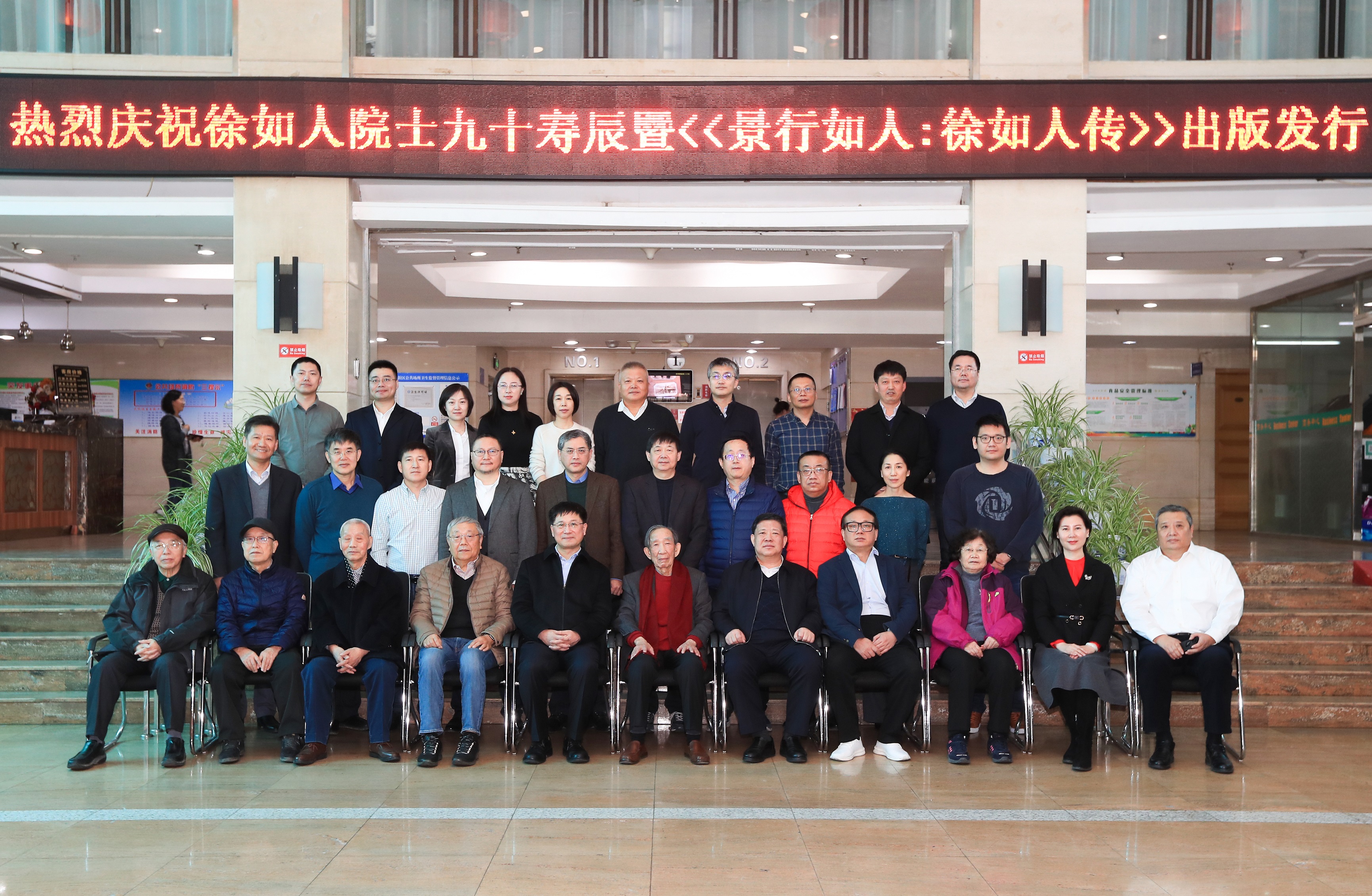 图26:2021年3月,《景行如人:徐如人传》正式出版发行仪式合影(前排左起:宋天佑、李守贵、徐翊华、裘式纶、张希、徐如人、姜治莹、江雷、王杏乔、于吉红、郝先儒)
