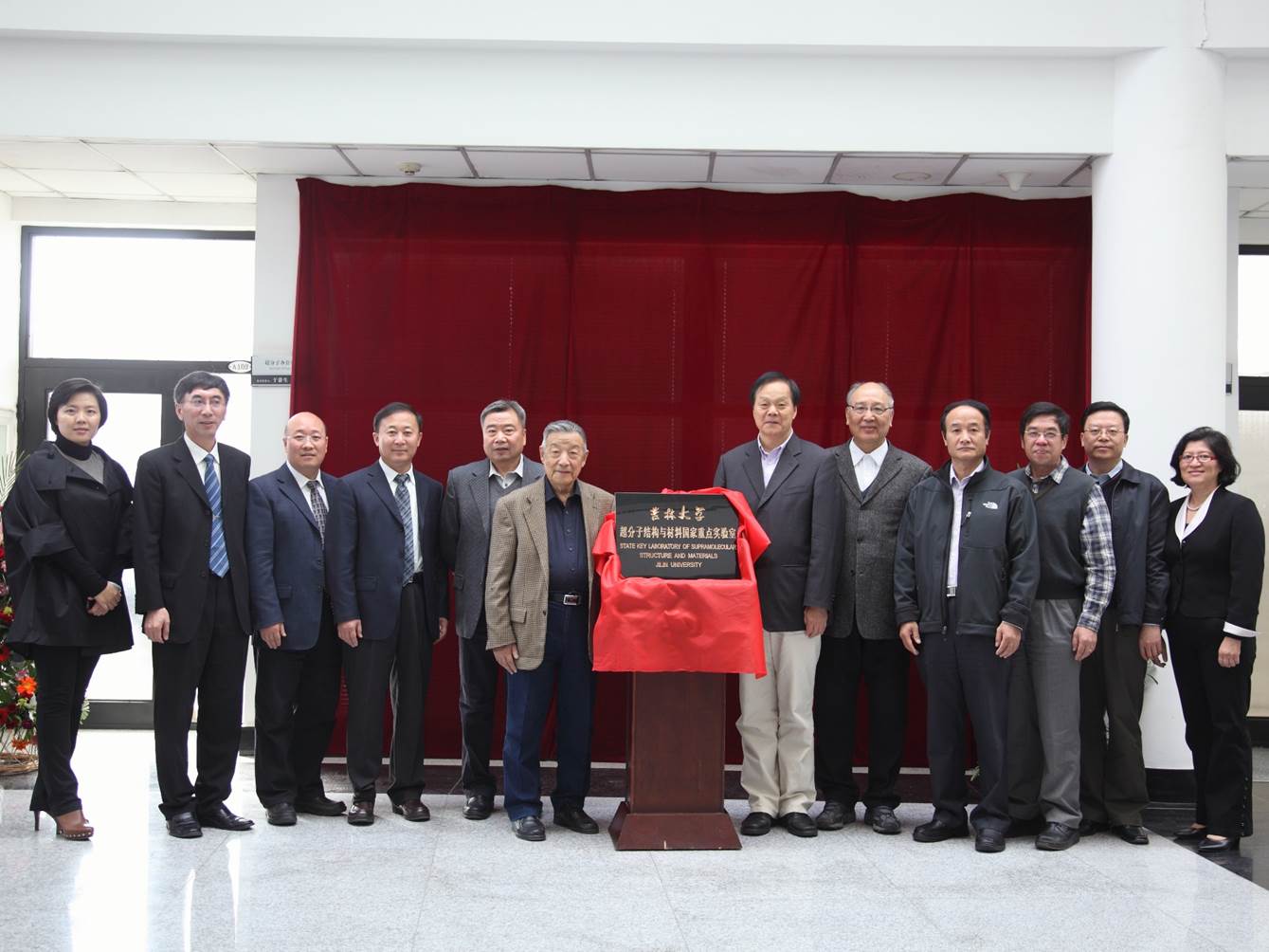 图12:2010年,沈家骢(左6)参加超分子结构与材料国家重点实验室揭牌仪式