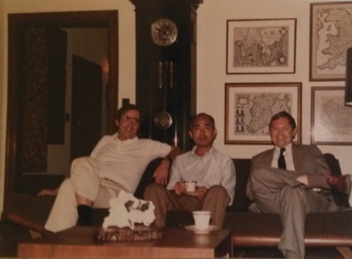 图16:1983-1984年,江元生(中)在康奈尔大学访学期间,在诺贝尔化学奖获得者罗阿尔德·霍夫曼教授(左)家中作客